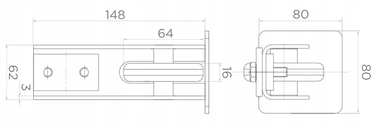 Подходит к направляющей для ворот с внешним участком 80x80x5 мм