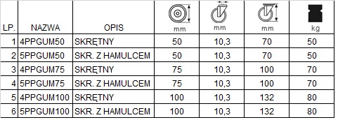 - КОЛЕСО состоит из полипропиленовой ступицы и немаркирующей резиновой шины, имеет подшипник скольжения. . Колеса имеют прочность 70 кг на колесо. Они медленно изнашиваются, устойчивы к повреждениям, поглощают удары и вибрации. Они вращаются на 360 градусов, облегчая маневрирование мебели или коляски. Они плавно вращаются на твердых и гладких поверхностях, таких как бетон, с минимальным трением.