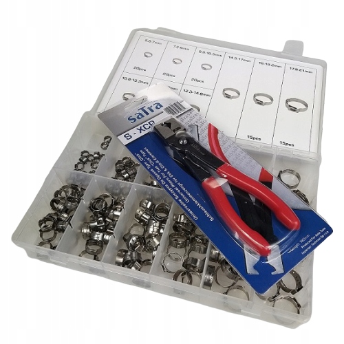В комплект входят 170 бесступенчатых хомутов в удобном органайзере.