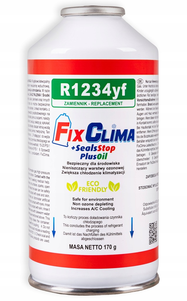 FixClimaсодержит синтетическую смазку, которая повышает производительность и безопасность компрессора, при этом улучшается его смазывающая способность, за счет чего лучше рассеивается тепло, образующееся при работе компрессора, что снижает риск выхода компрессора из строя.