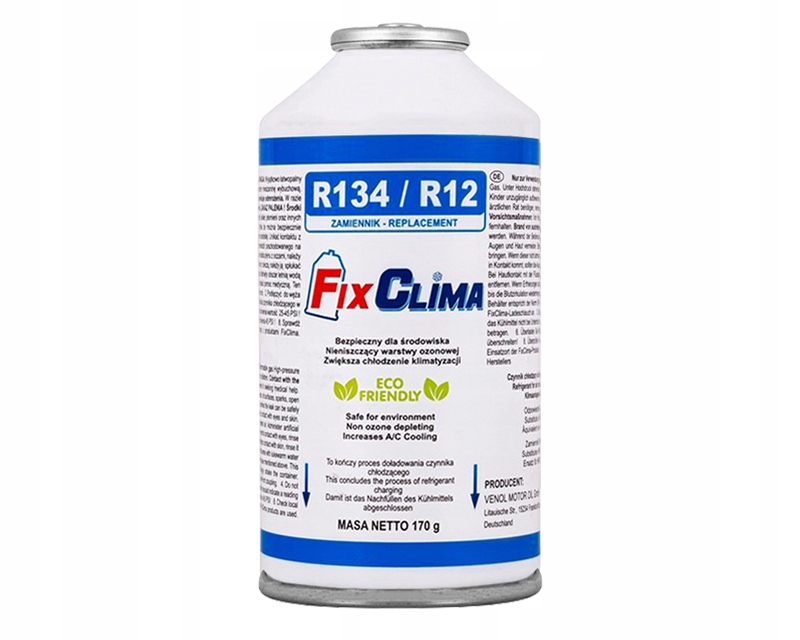- В одной банке содержится 170 грамм хладагента FixClima, что соответствует 453 граммам предыдущего хладагента R134a.