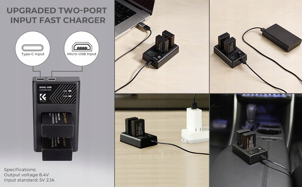 Комплект зарядного пристрою K&F, 2 батареї, батарея LP-E17