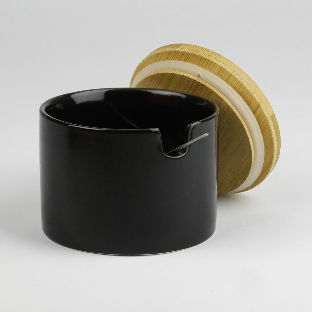 Сахарница состоит из емкость для сахара, деревянная крышка и чайные ложки. Он идеально подходит для повседневного использования, очень удобен, функционален, может использоваться в каждом доме и, кроме того, отлично смотрится на столе.