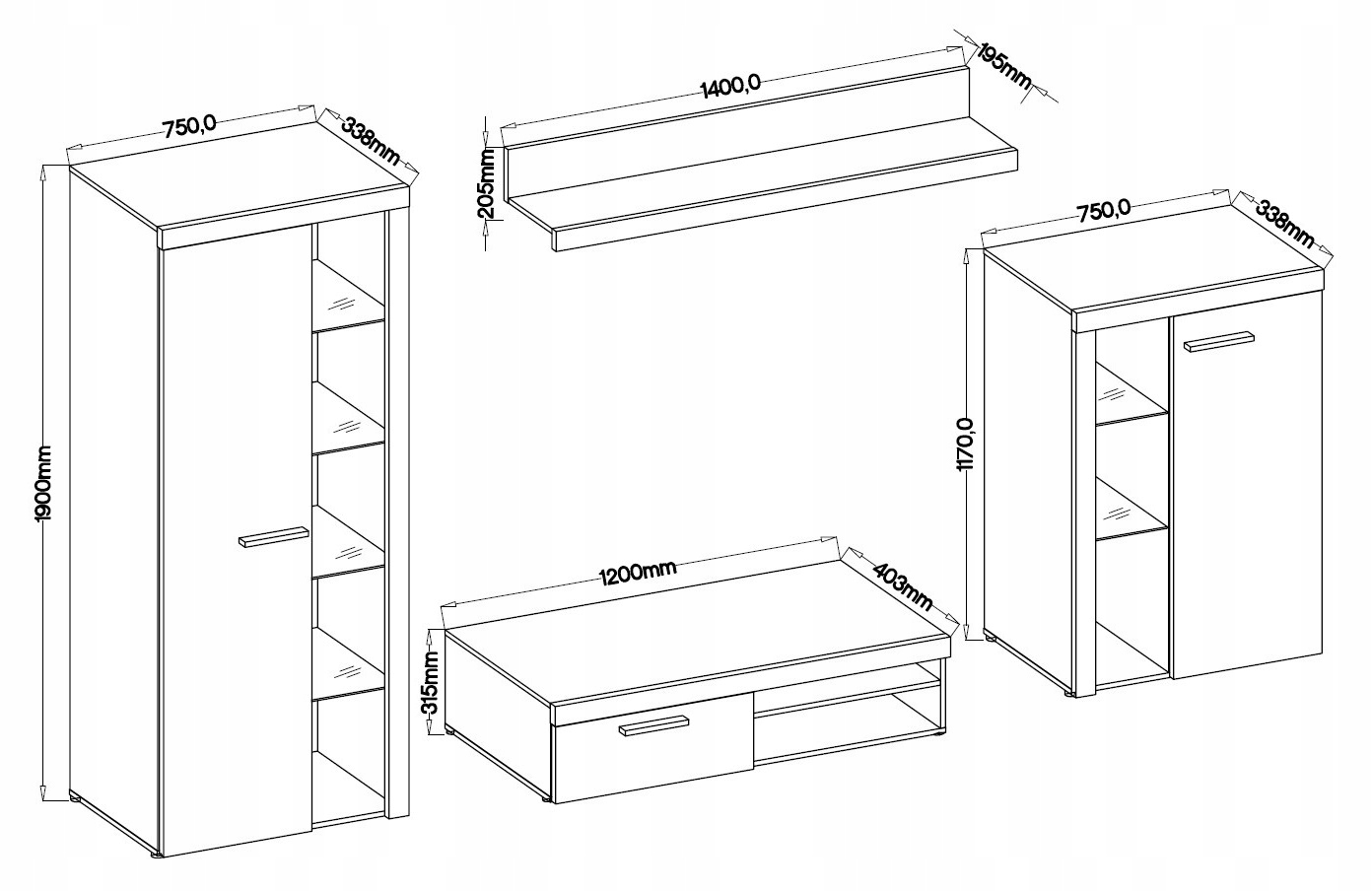 Komplet Meblościanka szafa komoda ława meble pokojowe do salonu RUMI biała