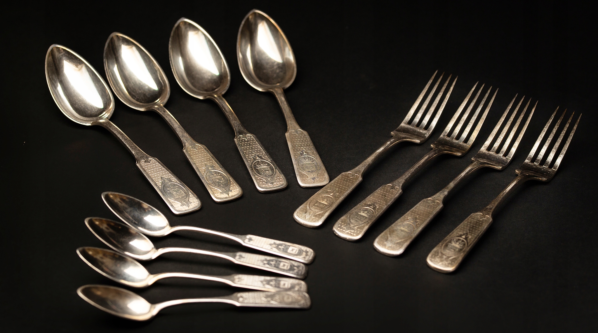 Набор серебряных столовых приборов со СТАРИКОНСКИМ ГЕРБОМ