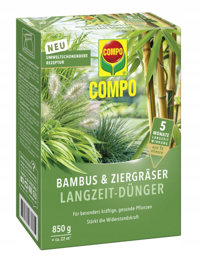 Высококачественное специальное удобрение для всех видов бамбука, декоративных и горшечных трав . Комбинация питательных веществ оптимально адаптирована к особым потребностям этих растений. Это обеспечивает стабильный рост, хорошее формирование листьев и здоровый, однородный внешний вид. Внесение удобрений обеспечивает бамбук сбалансированными ингредиентами на 4–5 месяцев.