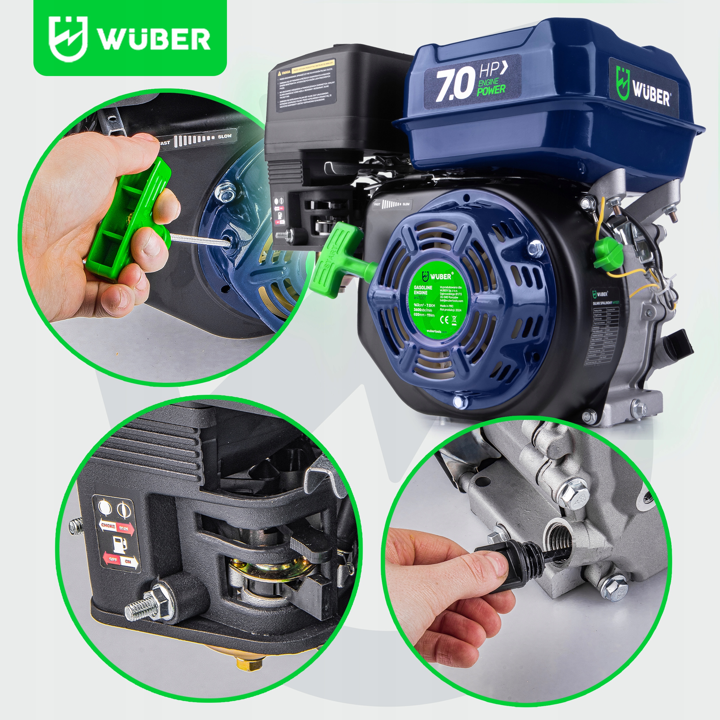 ► Двигатель OHV ► Диаметр вала 20 мм ► Мощность 7 л.с. ► 3600 об/мин ► Металлическая шестерня ► Легкий запуск ► Закаленный коленчатый вал ► Плавная регулировка скорости
