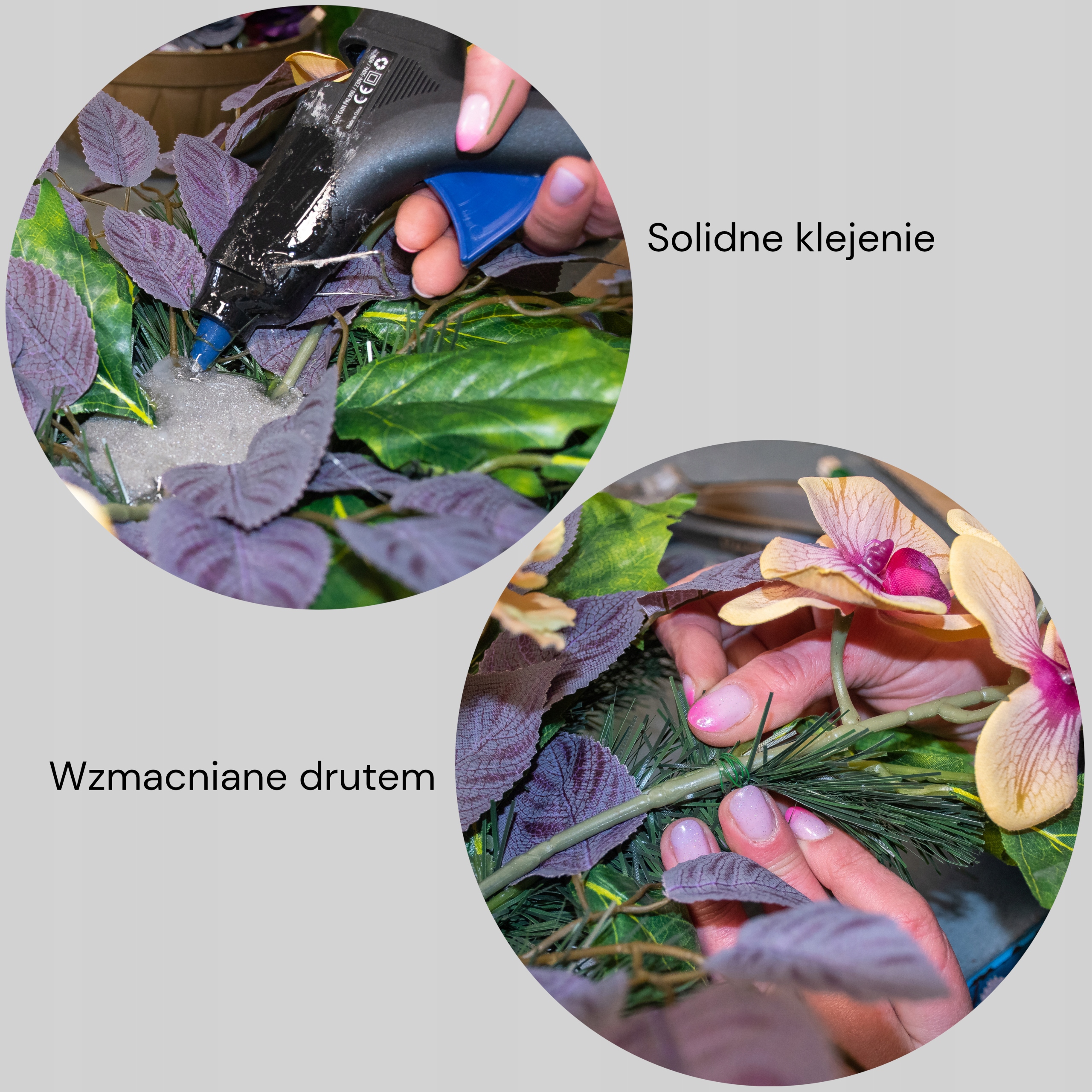 Для изготовления венков отбираются искусственные цветы высочайшего качества, что придает им вид чрезвычайно реалистично . Каждый цветок аккуратно крепится к основе с помощью специального клея, что предотвращает его разрушение. Кроме того, использование стабилизирующей проволоки позволяет сохранить идеальную форму и положение цветов в композиции.