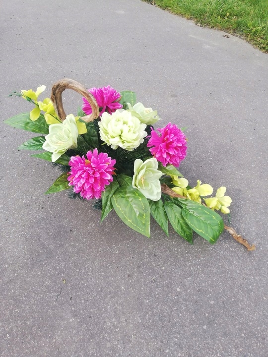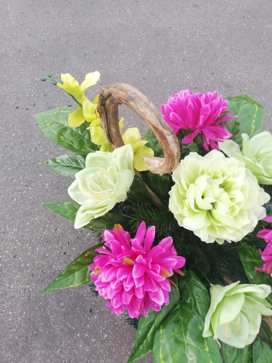 Цветочная композиция на могилу была тщательно составлена, с соблюдением модных цветов, из очень качественных материалов и искусственных цветов.