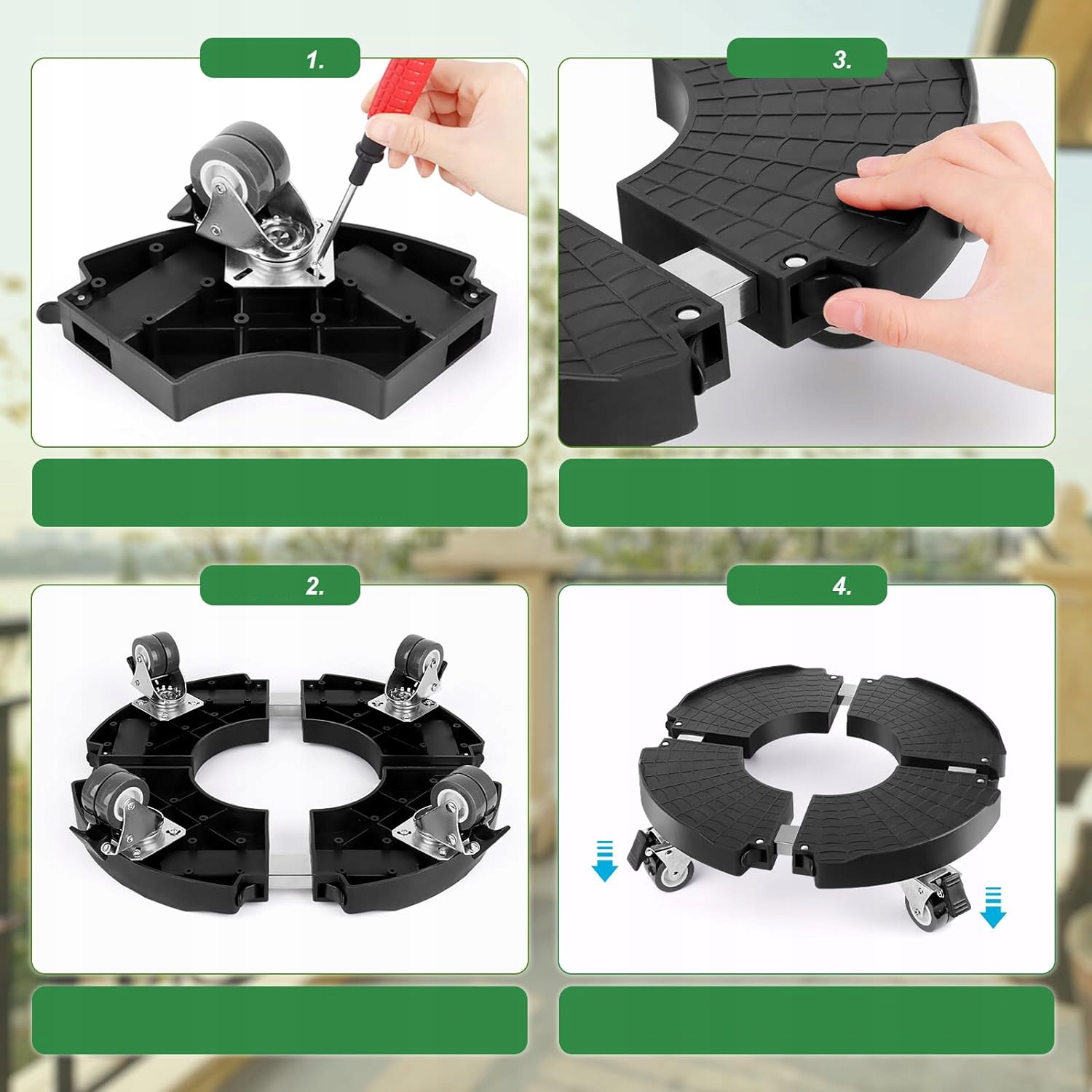 hetic 4 Ротационные 360 ° Колеса с двойной нержавеющей стали с 4 тормозами Убедитесь, что роликовая пластина остается на месте и может быть легко перемещена в любом направлении. Благодаря этому вы можете нести большие горшечные растения быстрее и с меньшими усилиями.