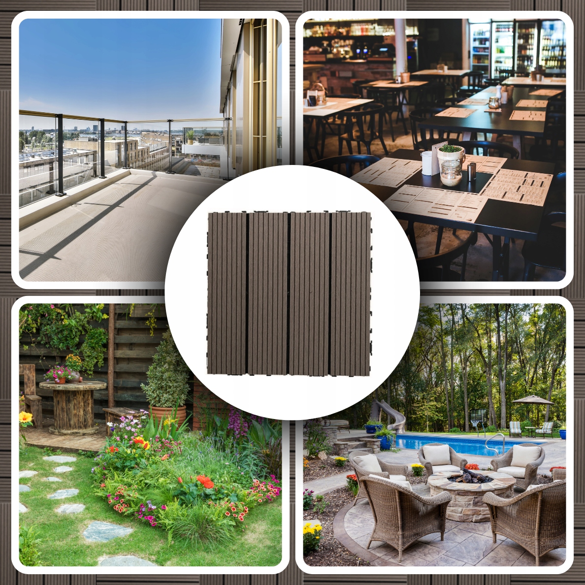Благодаря размерам 30 × 30 см и вдумчивой конструкции, вы можете создать ровный, эстетический и устойчивый пол на балконе, террасе или в беседке.