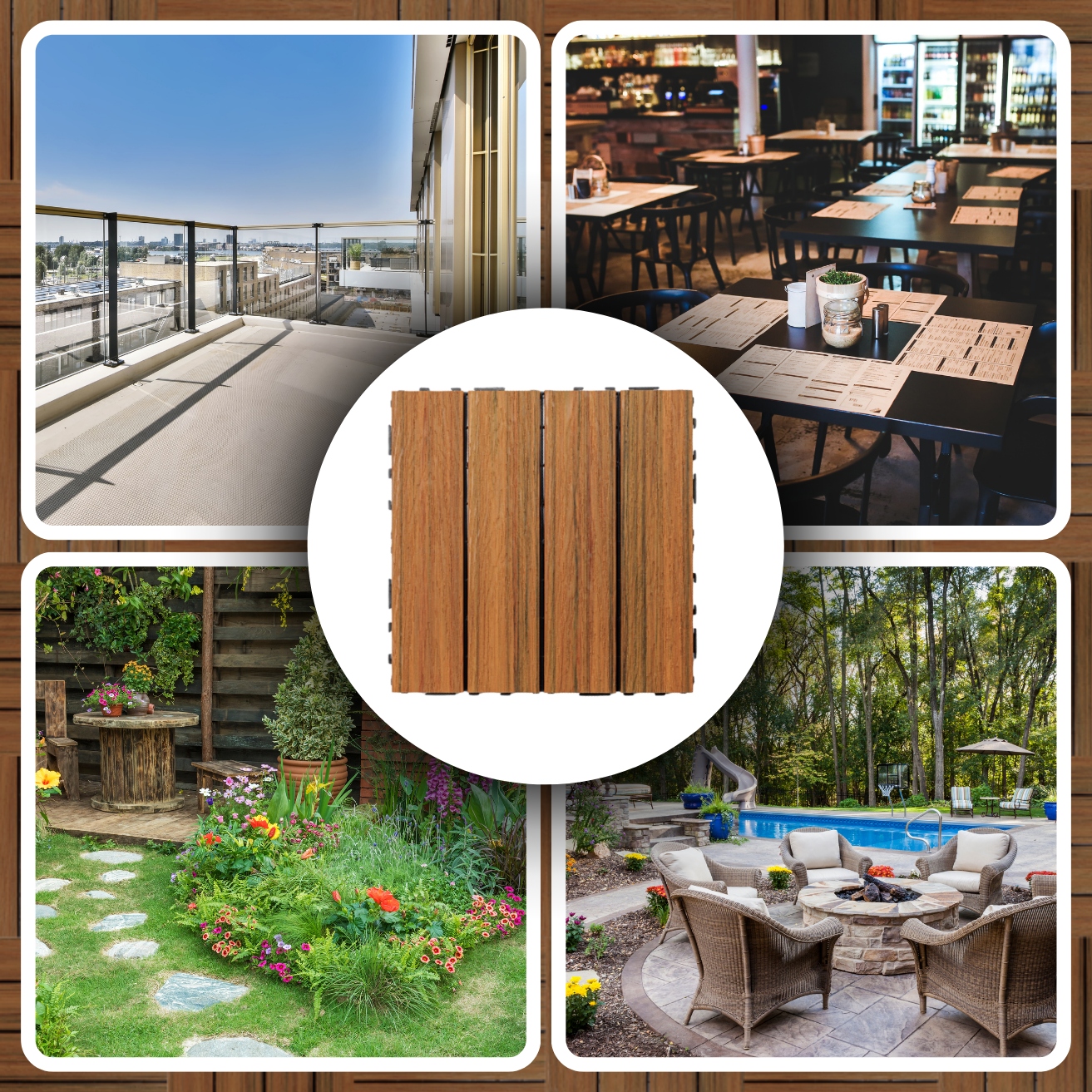КОМПОЗИТНАЯ ТЕРРАСНАЯ ЛЕНТА ТЕРРАСНЫЙ ПОЛ КОРИЧНЕВЫЙ ДЕРЕВЯННЫЙ 30х30х2,5см