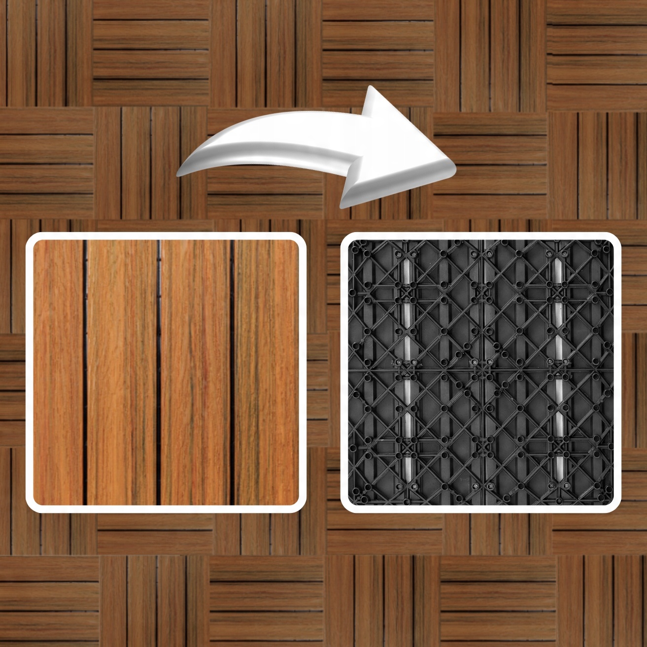 КОМПОЗИТНА ТЕРАСНА ПЛАТФОРМА КОРИЧНЕВОГО ДЕРЕВА ТЕРАСНА ПІДЛОГА 30x30x2,5см