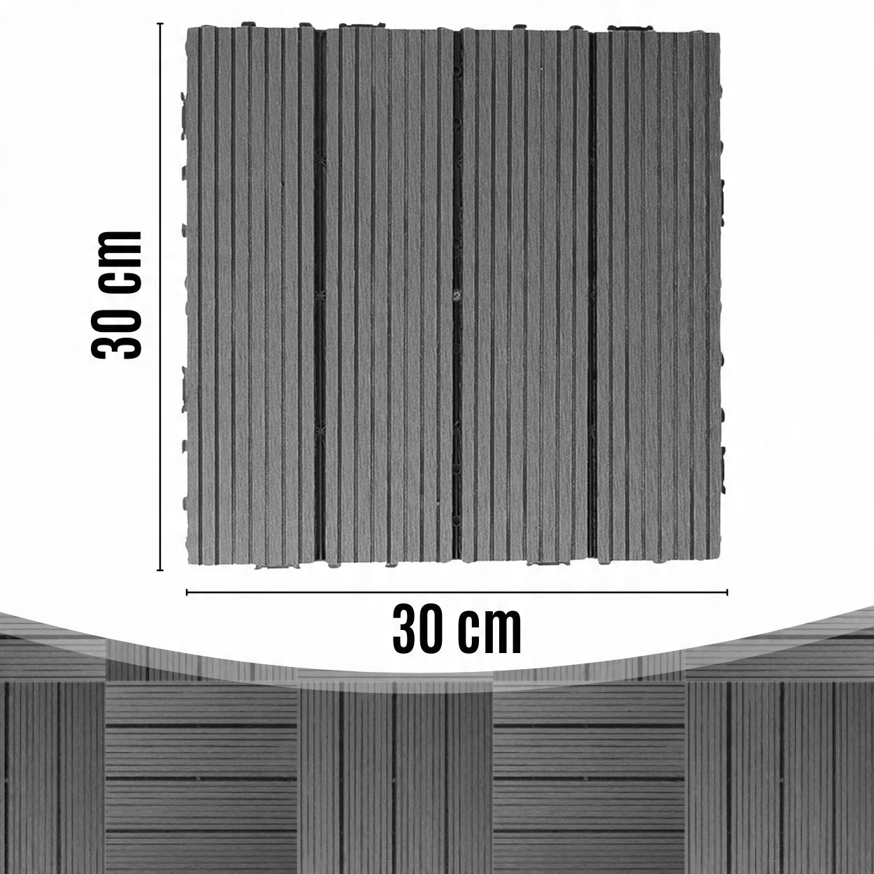КОМПОЗИТНА ТЕРАСНА ПЛАТФОРМА ТЕРАСНА ПІДЛОГА СІРА ДЕРЕВИНА 30x30x2,5см