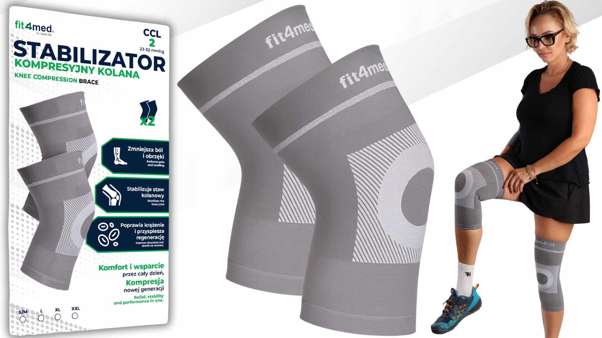 Повязка обеспечивает компрессию 23-32 мм рт.ст., адаптируется к ноге, стабилизирует колено и поддерживает микроциркуляцию.