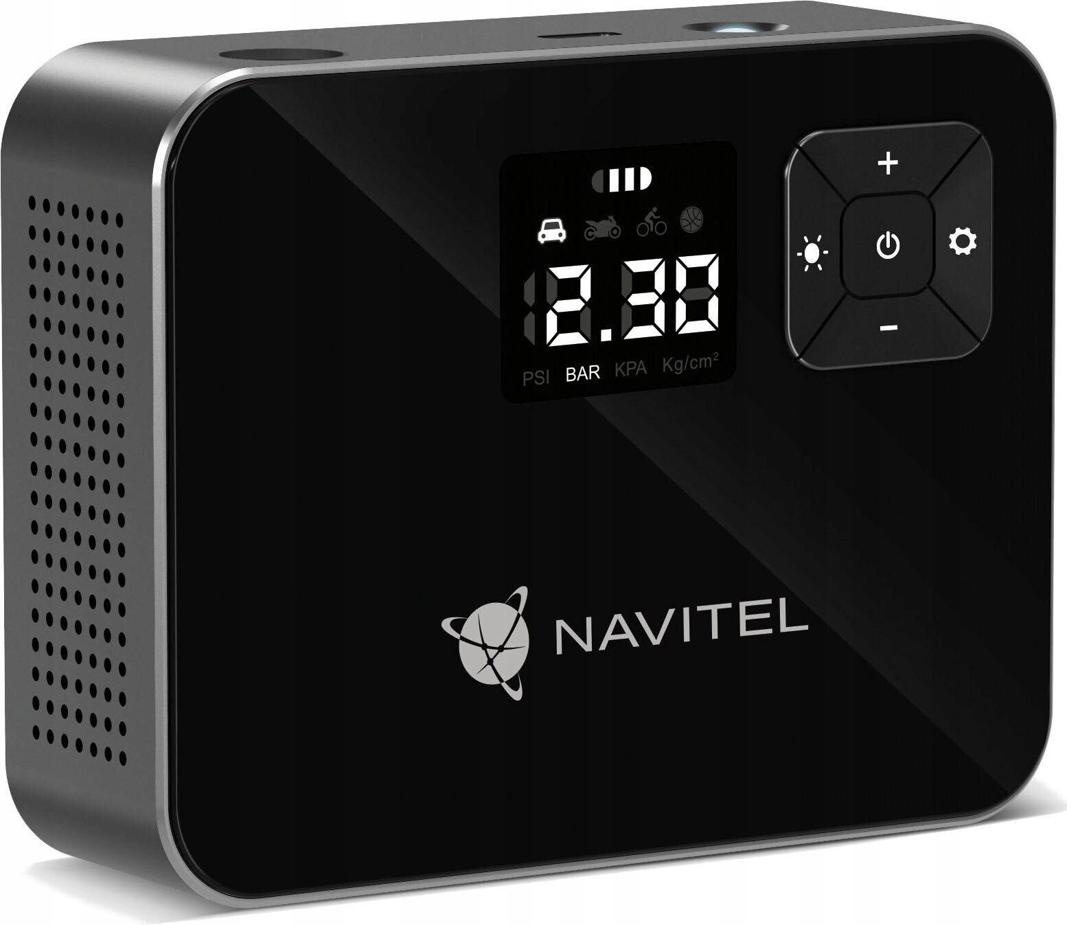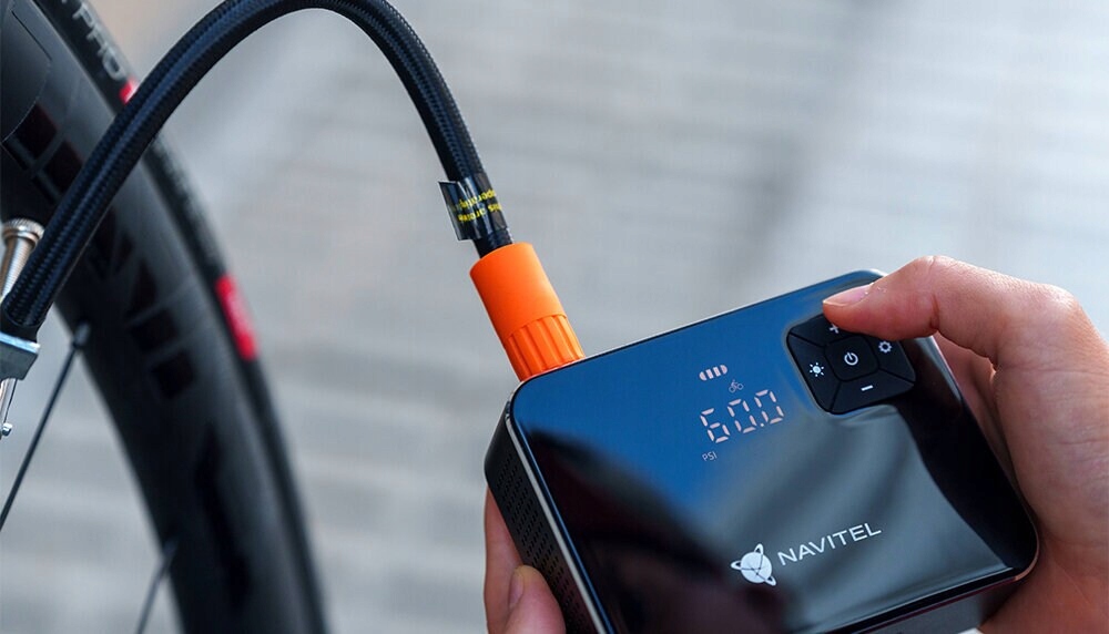 NAVITEL AIR 15 AL — воздушный компрессор с батарейным питанием, автоматическим регулятором давления, цифровым манометром и ЖК-дисплеем. AIR 15 AL позволяет легко накачивать шины автомобиля, велосипеда, мотоцикла, мяча или игрушки для бассейна. Благодаря встроенному Li-ion аккумулятору емкостью 2000 мАч компрессор работает автономно, без необходимости подключения к электрической розетке или бортовой сети автомобиля.