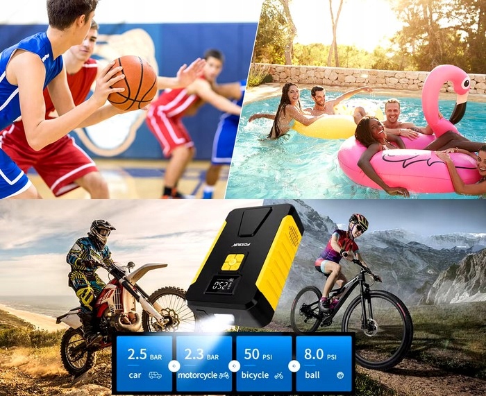 Идеально подходит для отпуска, кемпинга или поездок на выходные. Вы легко сможете надуть матрас, понтон, игровые мячи, а также велосипедные и автомобильные шины. Точные настройки давления для каждого вида деятельности: