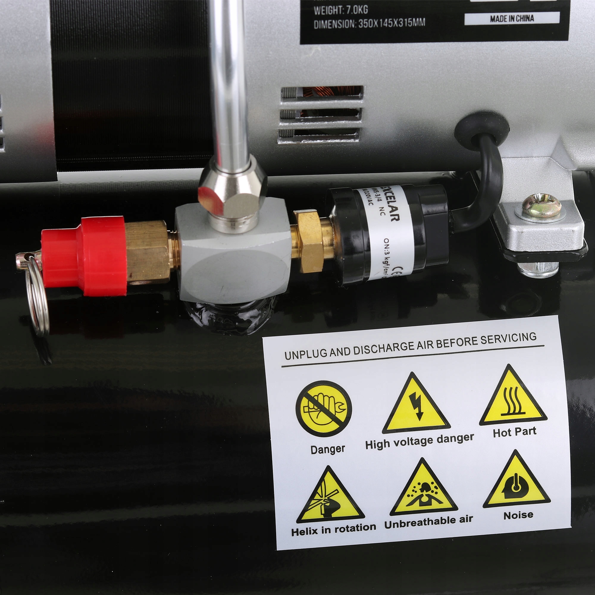 Оснащен редуктором с понятным манометром, имеющим четкую шкалу, представленную в двух единицах. Компрессор питается от сети 230В и устойчив к пробоям 220-240В.
