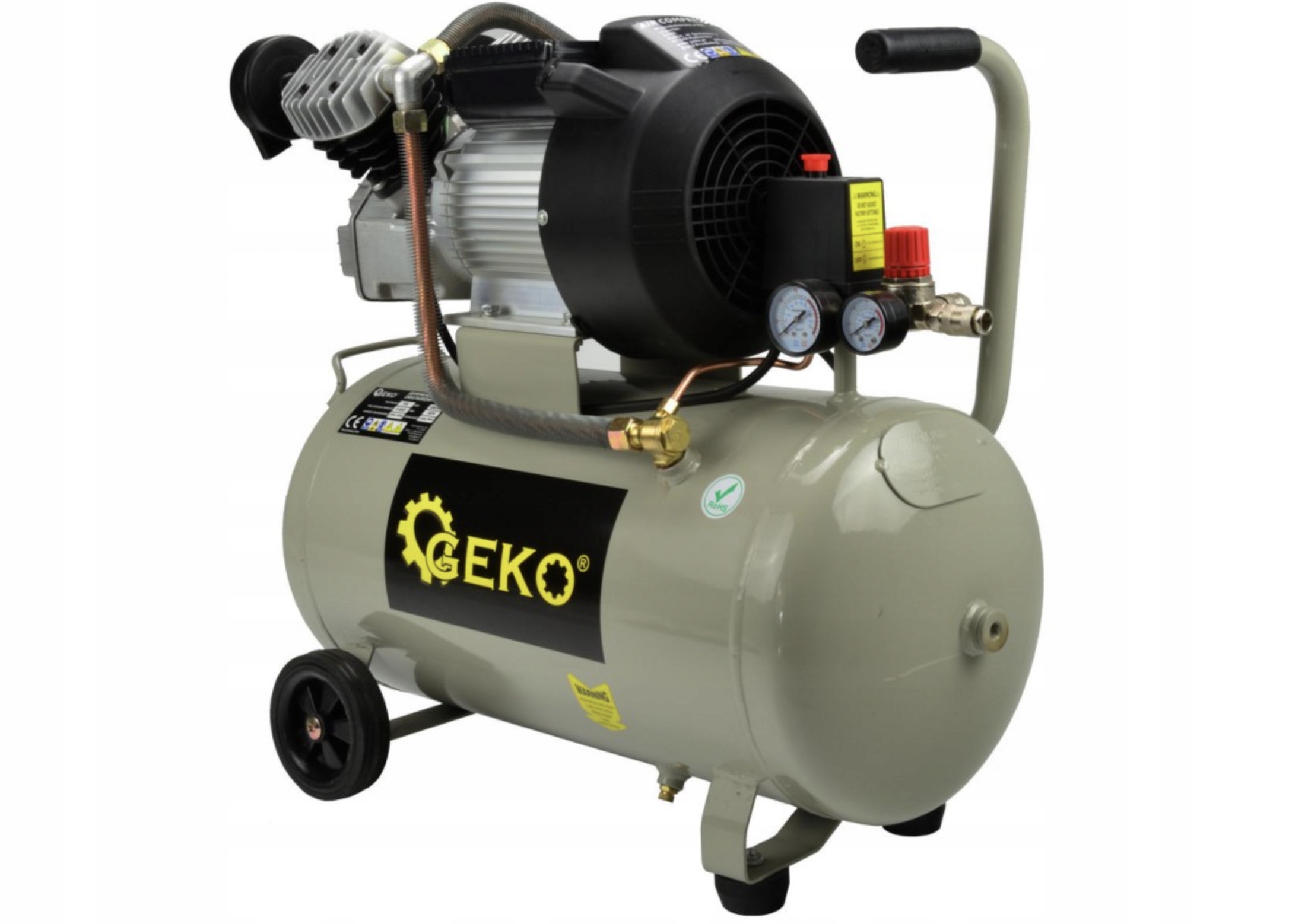 - Масляный компрессор с экономичным 2-поршневым V-образным двигателем мощностью 3 л.с. и емкостью бака 50 литров.