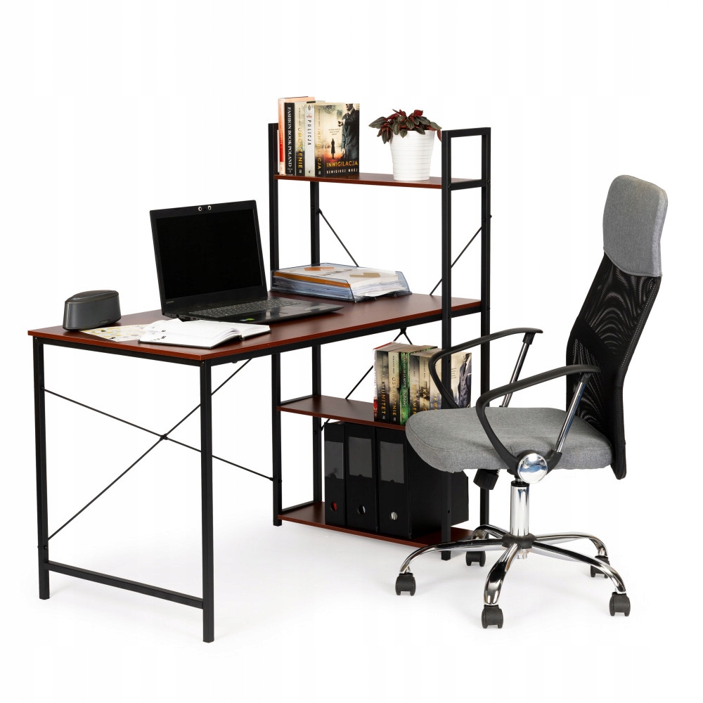 Структура изготовлена из металла в сочетании с темным дубовым цветом столешницы, придает ей современный вид, который вписывается в стиль как офисных, так и домашних пространств. Покрытие с функциональными полками четыре дает вам возможность удобно организовать и хранить офисные аксессуары и книги, что позволяет вам поддерживать порядок и повысить эффективность работы. Ноги с защитными ногами защищают поверхность пола от повреждения.