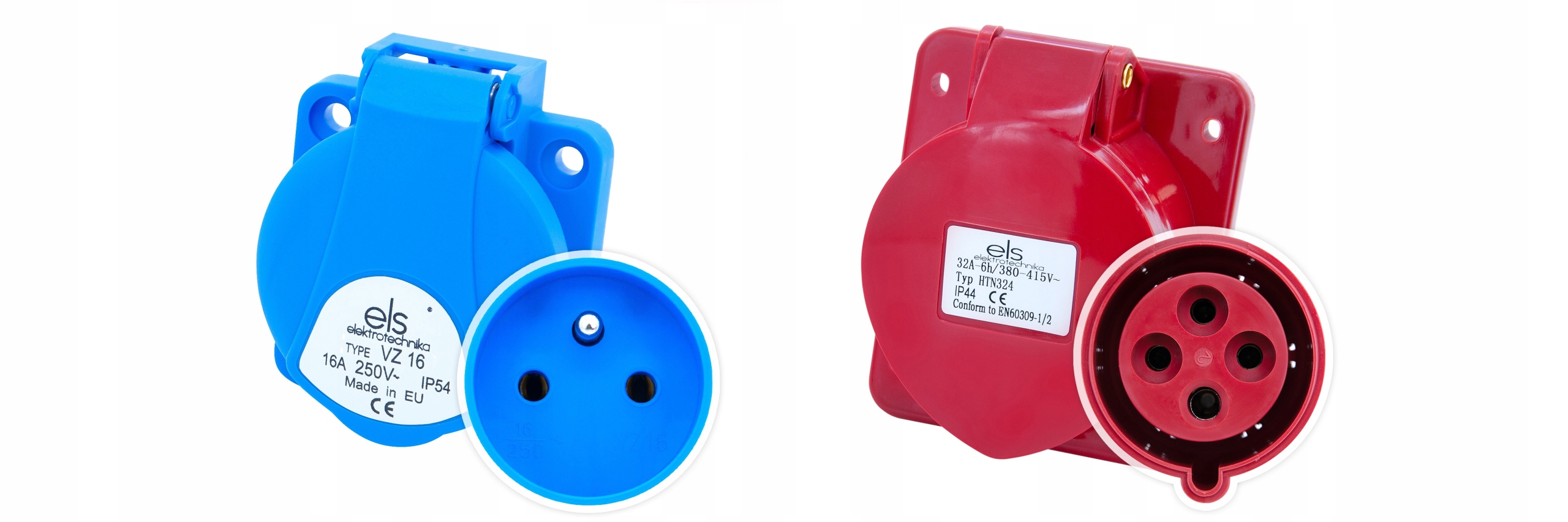✅ 2 однофазные фиксированные розетки с контактом 16А 230В IP54, полностью подключенные кабелем LGY сечением 2,5 мм2 и защищенные C16 1P,