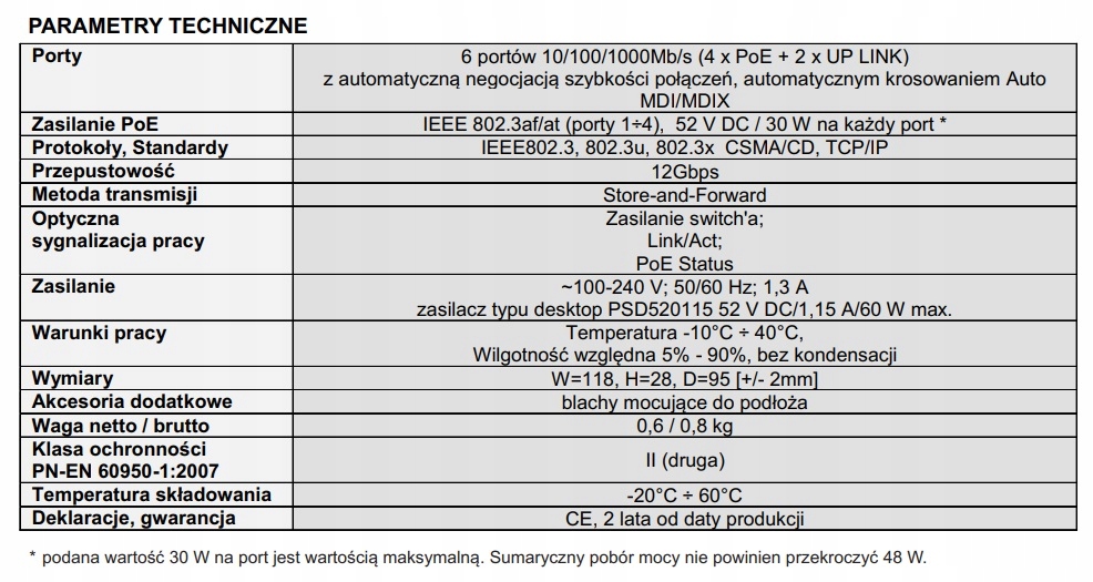 Pulsar SFG64 — это коммутатор PoE, предназначенный для питания IP-камер, работающих в стандарте IEEE 802.3af/at. Коммутатор на портах с 1 по 4 имеет функцию автоматического обнаружения устройств с питанием в стандарте PoE/PoE+. Надежно работает с камерами видеонаблюдения всех производителей. Порты UPLINK используются для подключения дополнительных сетевых устройств — в данном устройстве это порты SFP для подключения оптоволоконных устройств. На передней панели отображается рабочее состояние устройства с помощью светодиодов. Технология PoE обеспечивает подключение к сети и снижает затраты на установку за счет устранения необходимости прокладывать отдельный кабель питания для каждого устройства. Помимо камер, таким способом можно питать сетевые устройства, использующие эту технологию, например IP-телефоны, точки доступа, маршрутизаторы. Блок питания для устройства в комплекте.