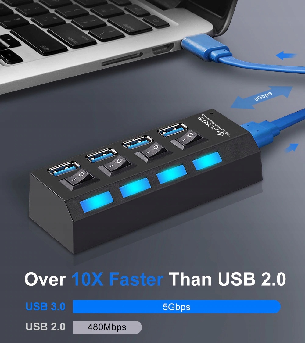 КОНЦЕНТРАТОР USB 3.0 USB РАЗВЕТВИТЕЛЬ 4 ПОРТА