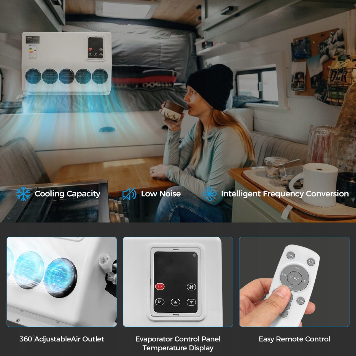 - Этот кондиционер на крыше RV оснащает функцию охлаждения, которая удовлетворяет ваши потребности в жаркое лето. Охлаждающая способность 1000BTU летом позволяет вам наслаждаться прохладной атмосферой, повышает эффективность охлаждения на 15% по сравнению с выбранными альтернативными системами охлаждения, доступными в настоящее время на рынке.