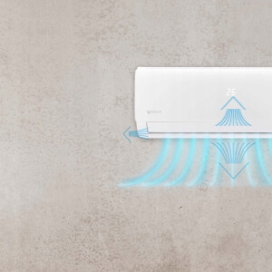 Кондиционер эффективно распределяет воздух в помещении через широкий диапазон приточного воздуха, обеспечивающий эффективное охлаждение или обогрев.