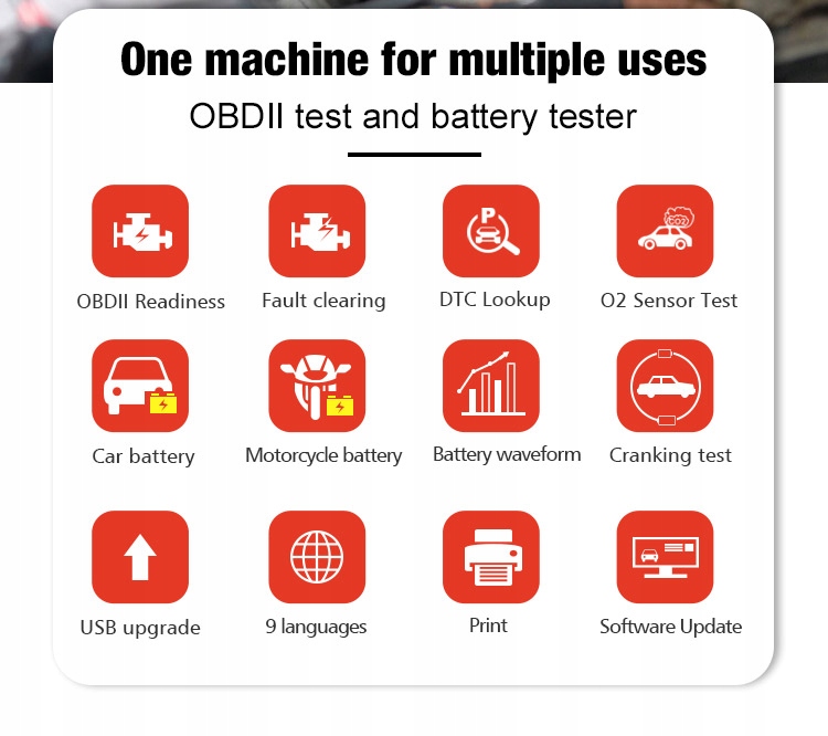 Konnwei KW-870 - 2 в 1 - сканер ошибок OBD-II + тестер аккумулятора автомобиля/мотоцикла: