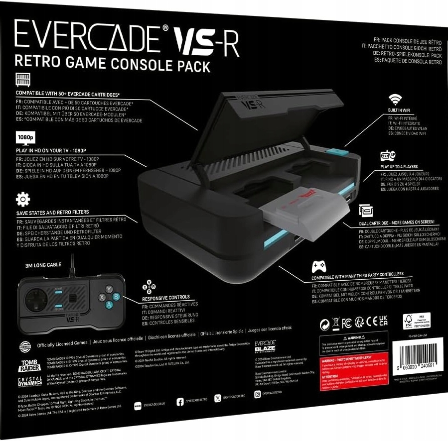 Новая консоль Evercade VS-R полностью совместима с картриджами Evercade (за исключением Namco Музейная коллекция 1 и 2) и позволяет играть в аркадные, консольные и компьютерные игры, предлагая более 500 игр на более чем 50 физических картриджах Evercade — это буквально пять десятилетий игр, доступных на одном устройство.