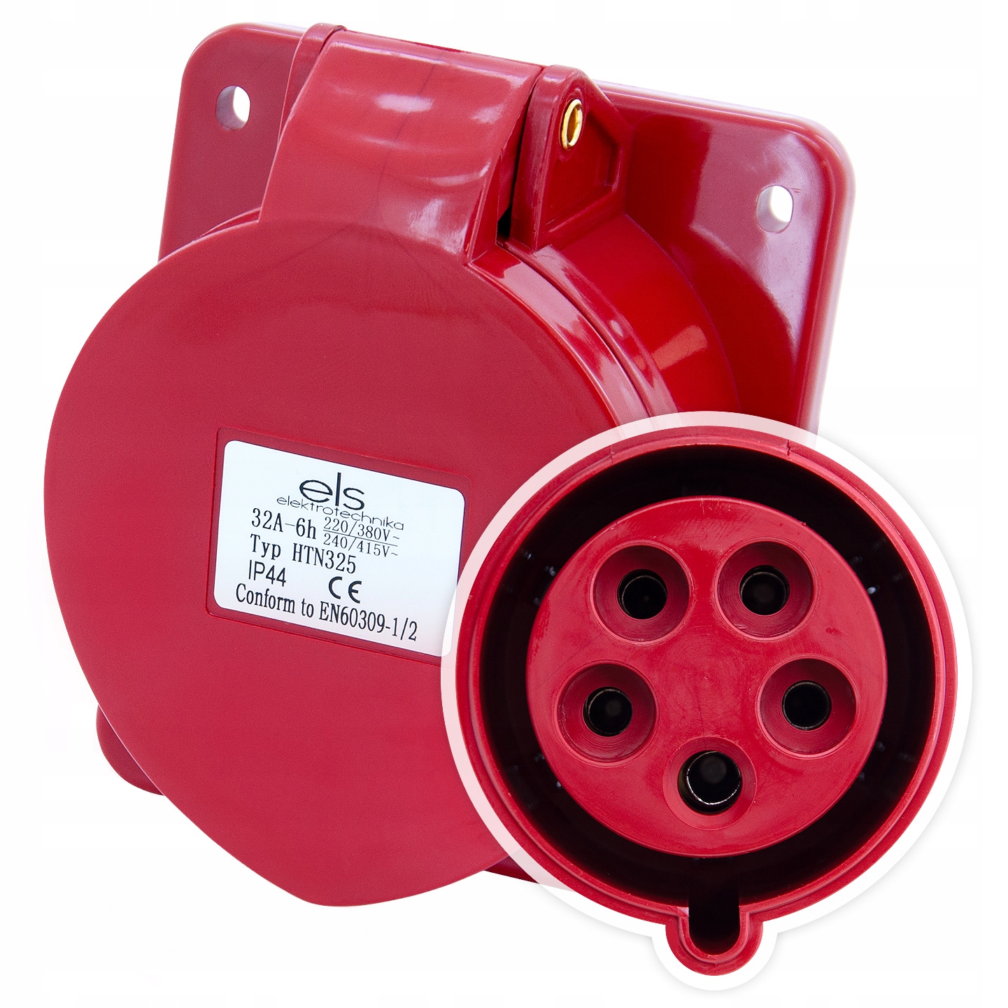 ✅ 2 угловые розеткис никелированными контактами 32А 5П 400В IP 44, полностью распаянные и защищенные B32 3P .