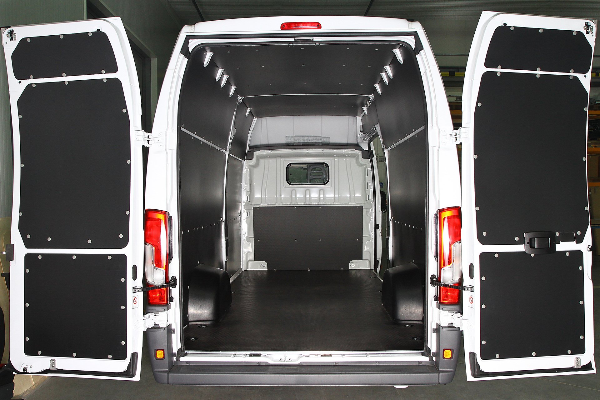 Световые борта из армированного пластика, вырезаны по технологии ЧПУ толщиной 5 мм от пола до потолка, спасибо для которого наши конструкции идеальны в каждой детали. Все элементы имеют отверстия для самостоятельной сборки. Боковые панели крепятся с помощью дюбелей. Боковые и задние двери полностью закреплены, идеально подогнаны и закреплены в заводские отверстия с помощью штифтов.