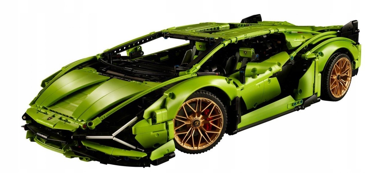 - Восьмиступенчатая секвентальная коробка передач, подвижный задний спойлер, открывающийся закрылки спереди и сзади, детально проработанные дисковые тормоза и золотые диски делают эту модель LEGO® Technic наиболее точной копией Lamborghini Sián FKP 37.
