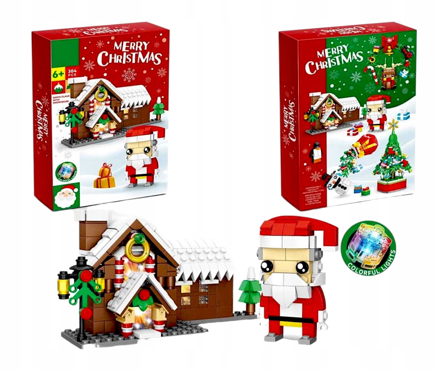 СТРОИТЕЛЬНЫЕ БЛОКИ НАБОР РОЖДЕСТВЕНСКИХ БЛОКОВ САНТА И ДОМ LED 304 EL