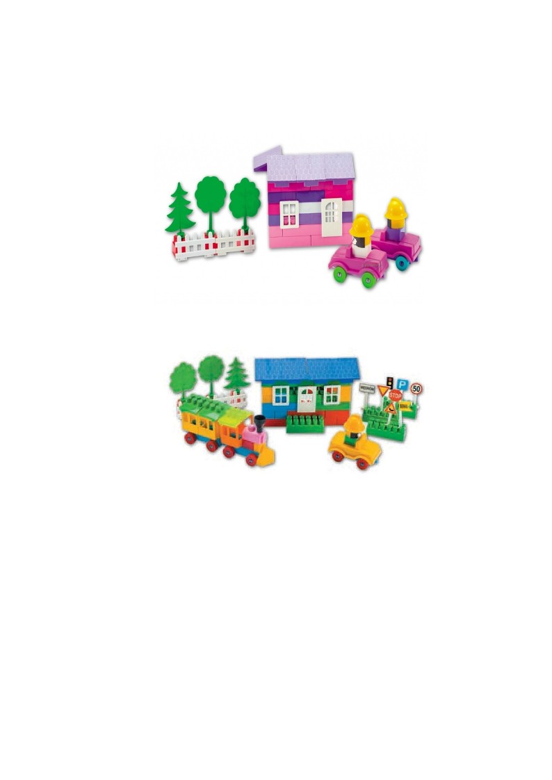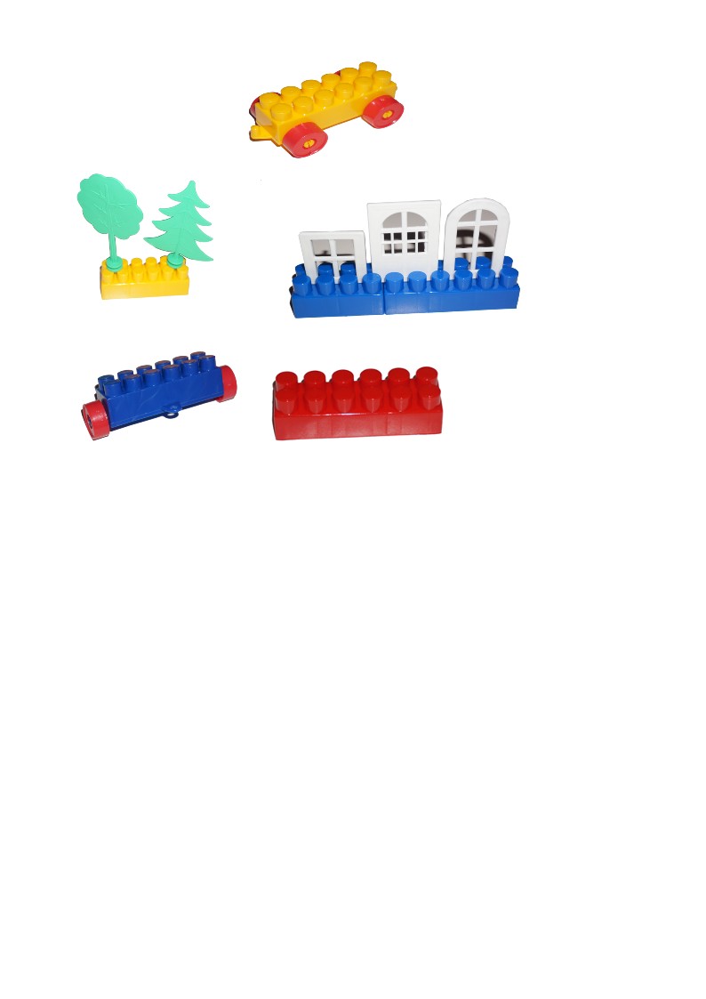 Помимо блоков в набор также входят такие аксессуары, как: дорожные знаки, деревья, автомобили. , навесы и т.п.