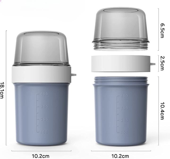 Два отделения для отдельного хранения твердых и жидких продуктов. Благодаря надежной застежке его можно положить в сумку во время путешествия, а герметичная конструкция делает его полезным для здоровья выбором, который всегда будет с вами!