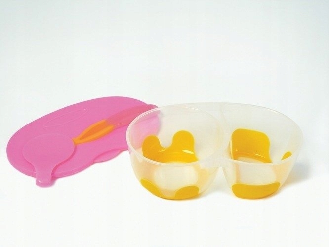 Пластиковая чаша, разделенная на две части, что позволяет ребенку подавать разнообразную еду. Отлично подходит для закусок и ужина.
