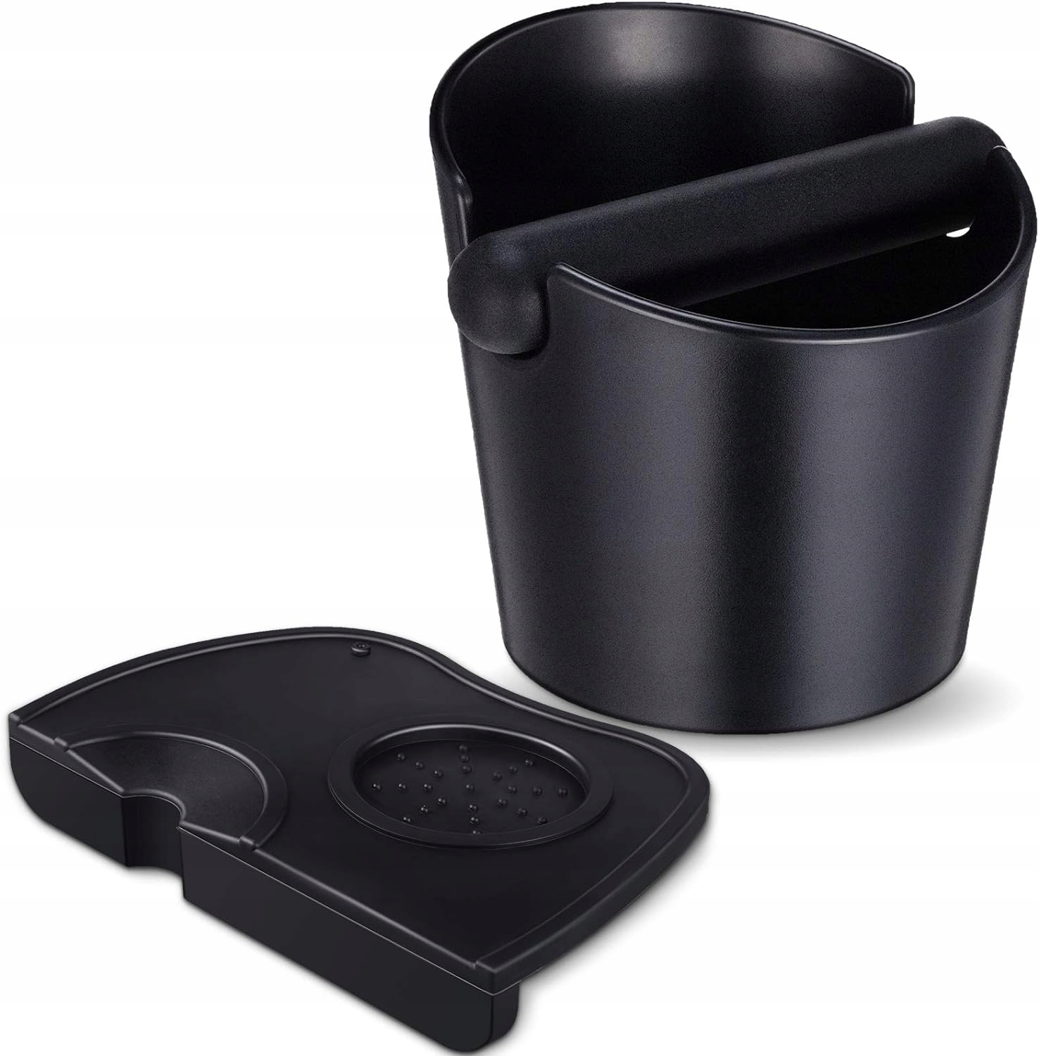 ☕【Уникальный дизайн】 Контейнер для кофейной гущи оснащен глубокой чашей, емкость достаточно большая, и дно. Он имеет нескользящую конструкцию, которая не скользит и не царапает кухонную стойку во время использования, и вы можете постучать по ней, чтобы свалка оставалась чистой. Оснащен съемной ударной планкой и силиконовой набивкой для кофе. Чтобы избежать резкого звука трения металла, он покрыт резиной, что более удобно в использовании.