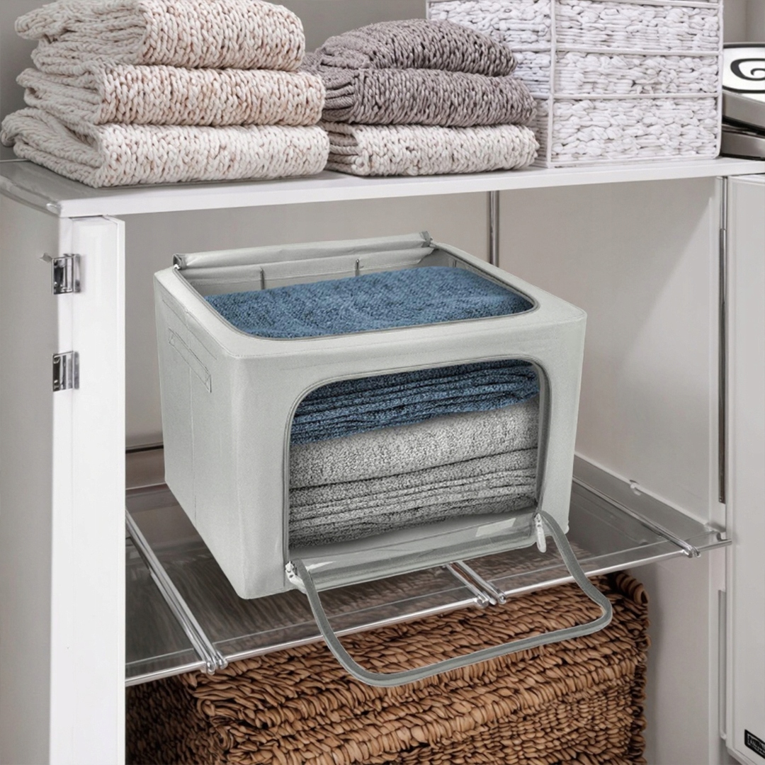 ОРГАНАЙЗЕР КОНТЕЙНЕР С РАМКОЙ 24Л СЕРАЯ СУМКА ДЛЯ ОДЕЖДЫ, ИГРУШЕК, ПОСТЕЛЬНЫХ ПРИНАДЛЕЖНОСТЕЙ