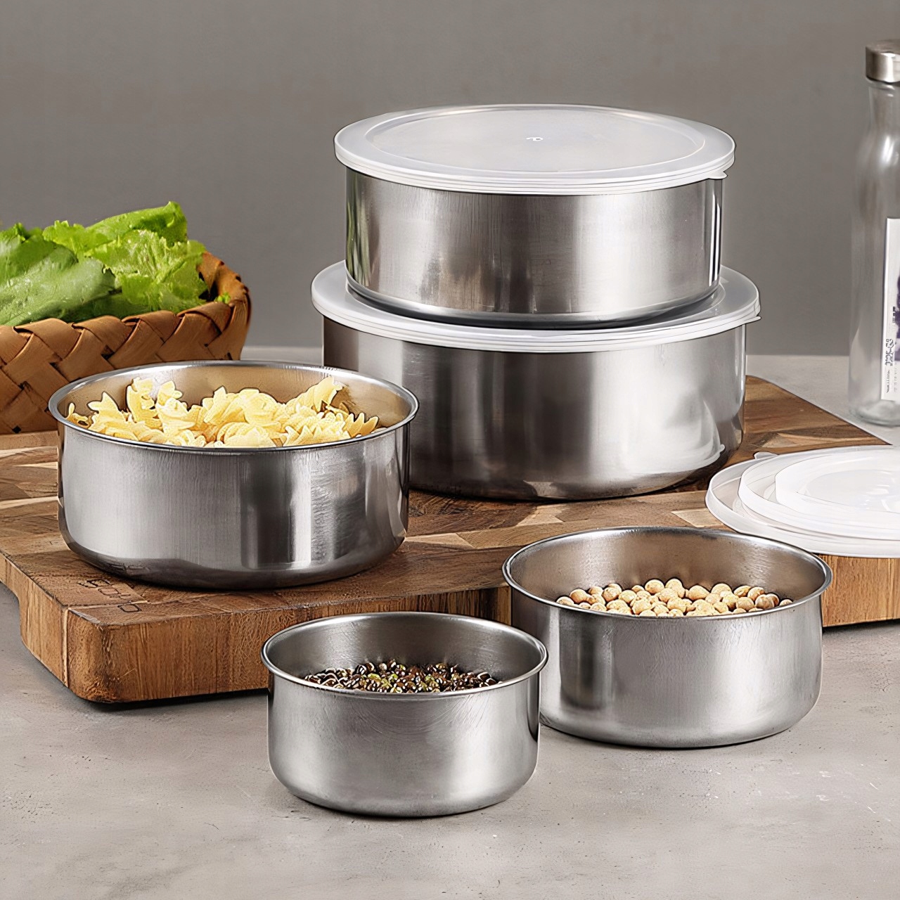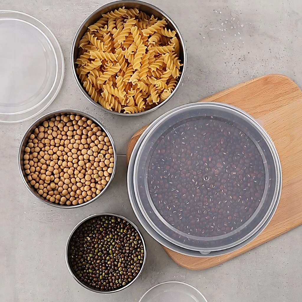 КОНТЕЙНЕРИ ДЛЯ ХАРЧУВАННЯ НАБІР КОНТЕЙНЕРІВ З 5 КРИШОК З НЕРЖАВІЮЧОЇ СТАЛІ