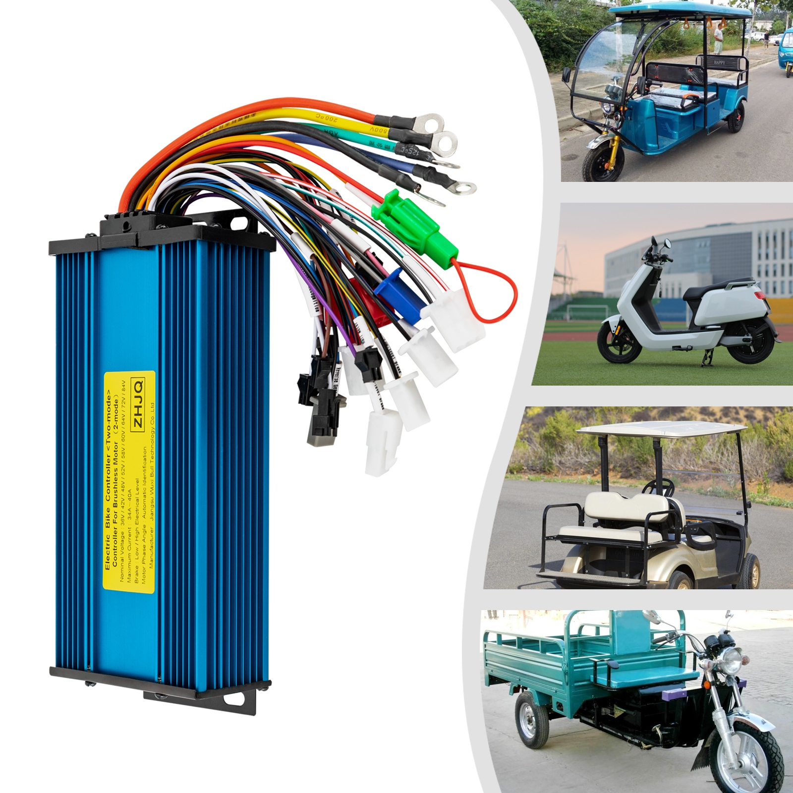 Применимо к бесщеточным двигателям с датчиком Холла или без него и подходит для электрических двухколесных транспортных средств, электрических трехколесные велосипеды и электрические скутеры.