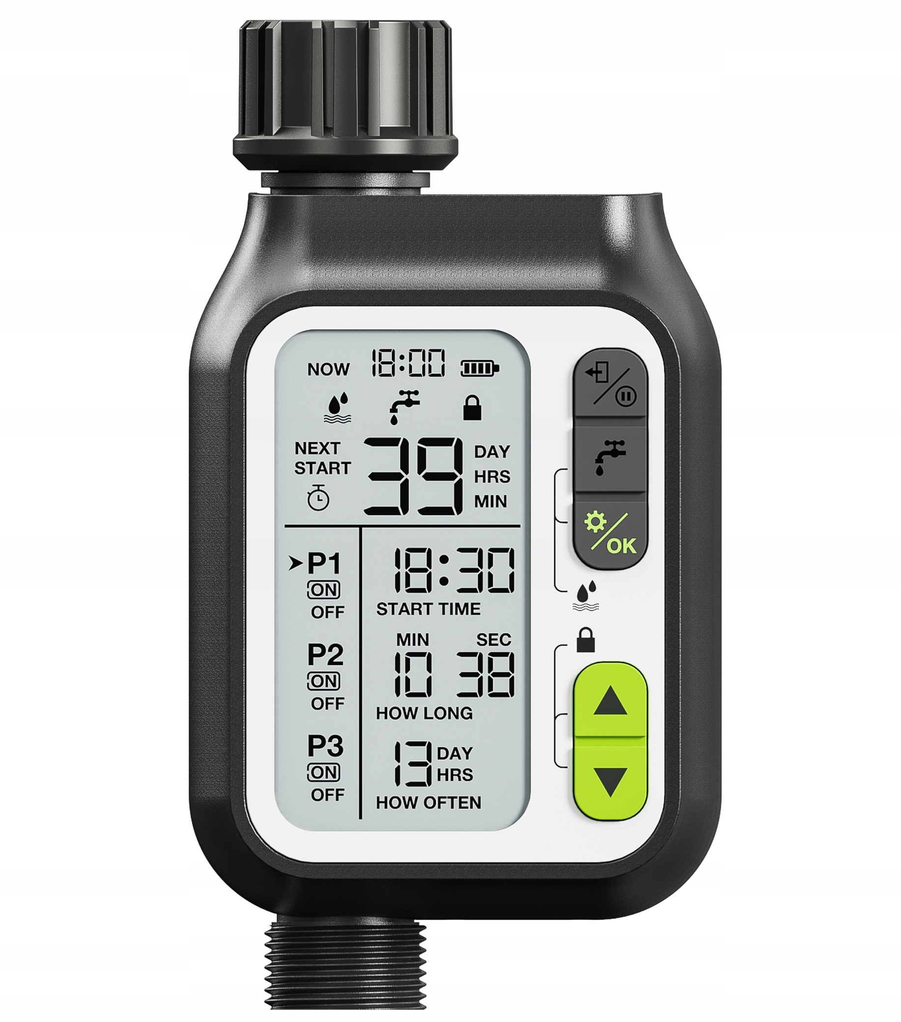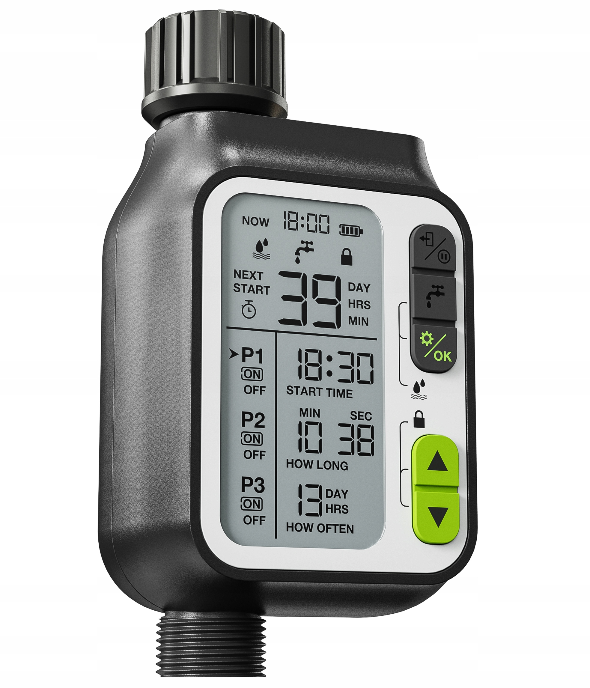 Благодаря программированию до 3 ирригационных циклов в день и регулировка частоты полива вы можете адаптировать систему к индивидуальным потребностям растений