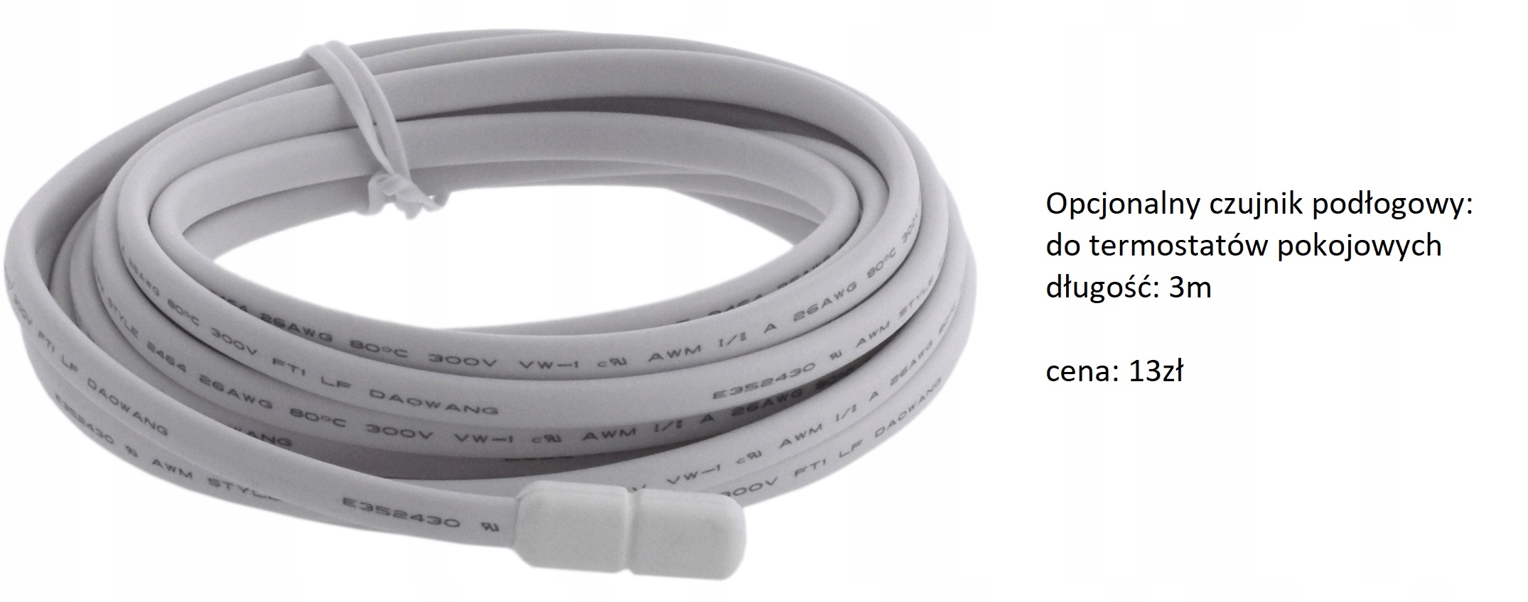 - 2 датчика температуры: внутренний воздух (входит в комплект) и внешний (опционально можно купить внешний напольный датчик на сайте стоимость 13 злотых)