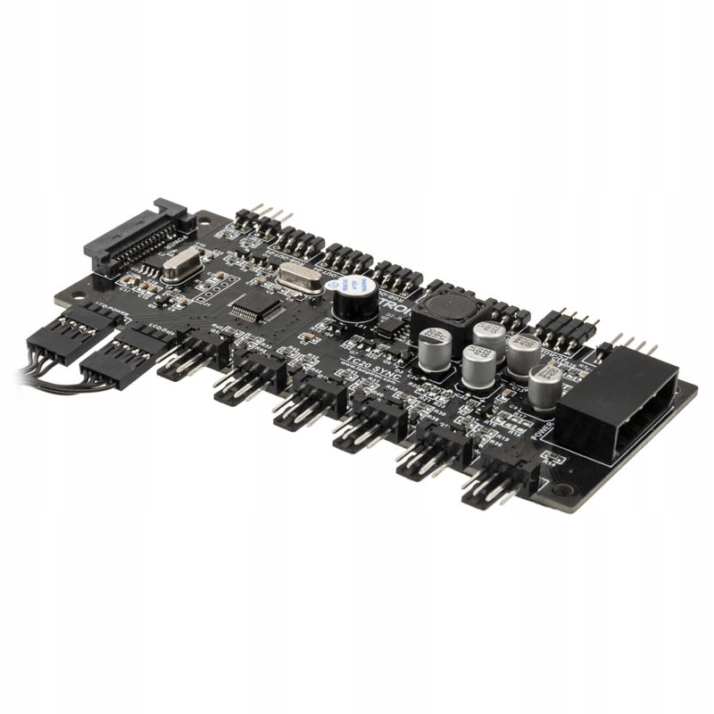 TC20 Sync Edition от LAMPTRONRON можно быстро и легко прикрутить к двум свободным слотам PCI. Серебристая рамка впечатляет матовой алюминиевой оптикой и ярким ЖК-дисплеем, который прекрасно сочетается. Всего можно подключить шесть вентиляторов с ШИМ (4-контактным разъемом). В комплект поставки также входят два датчика температуры. Управление вентилятором осуществляется через разъем SATA. Разъем Molex подает ток на RGB-светодиоды.