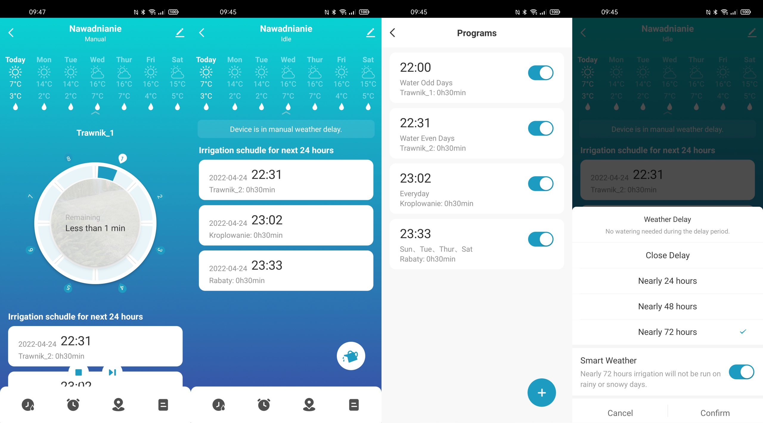 - Возможность включитьфункцию отсрочки полива в зависимости от прогноза погоды Google для данного местоположения