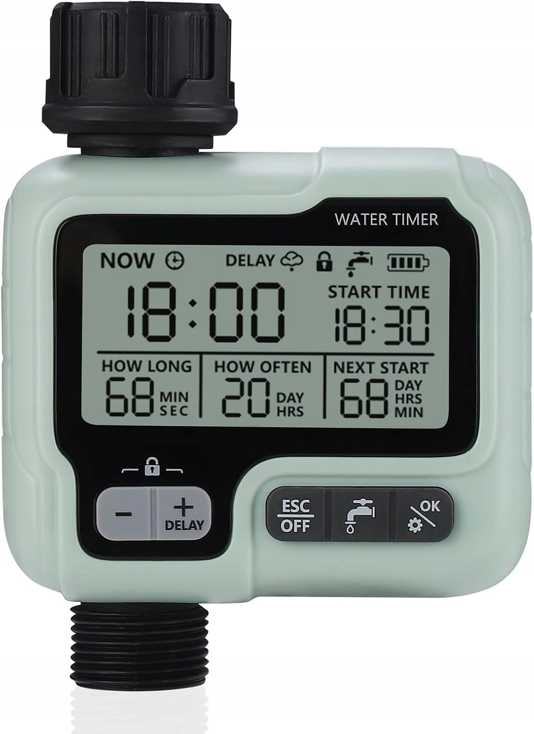 таймер полива johgee надежно и автоматически подает воду в ваш сад с помощью мобильных разбрызгивателей или спринклерных систем, предоставляя вам больше свободного времени