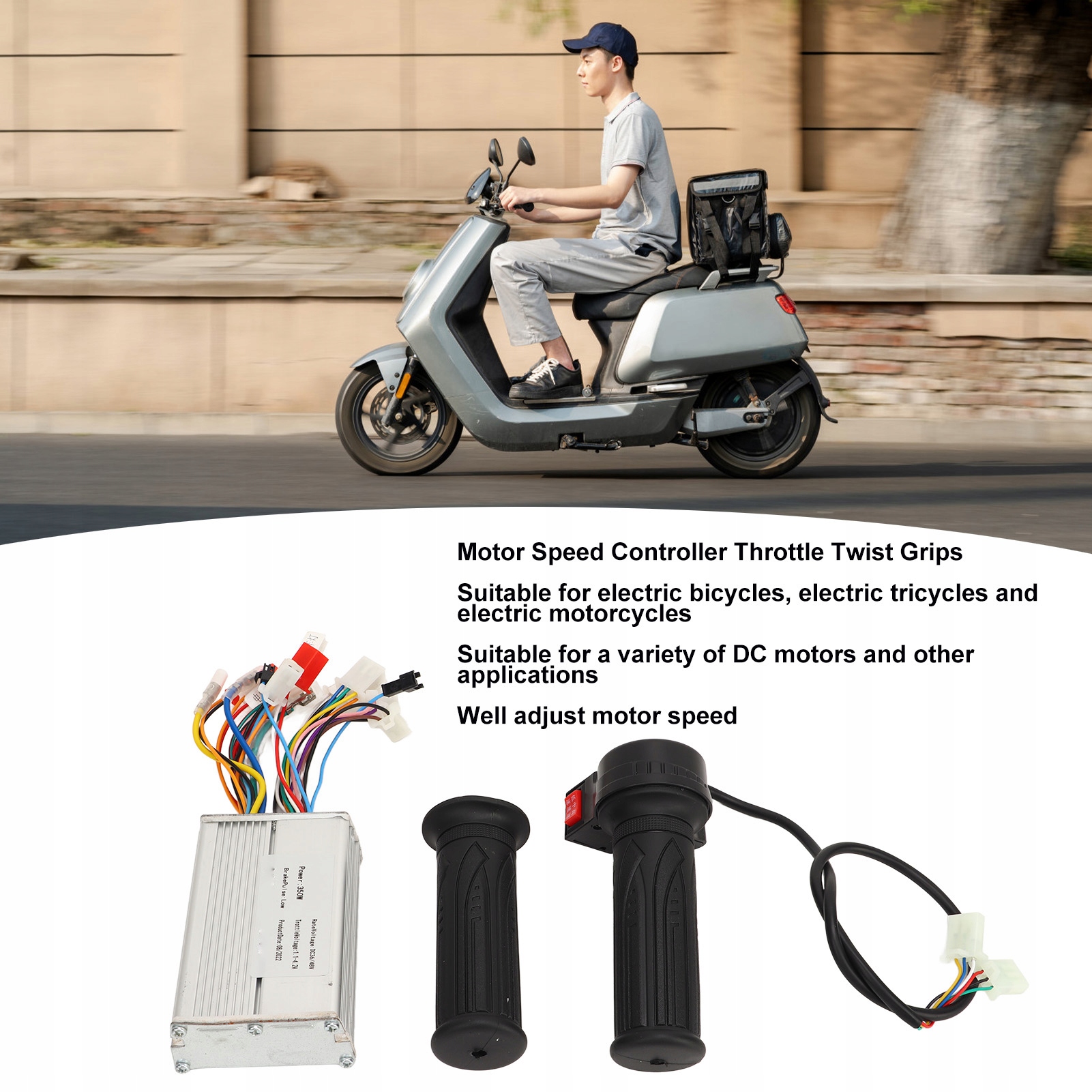 1. ПРИМЕНИМЫЙ СЦЕНАРИЙ: Дроссельные ручки регулятора скорости двигателя подходят для электрических велосипедов, электрических трехколесных велосипедов и электрических мотоциклов. Подходит для различных двигателей постоянного тока и других приложений, может хорошо регулировать скорость двигателя.