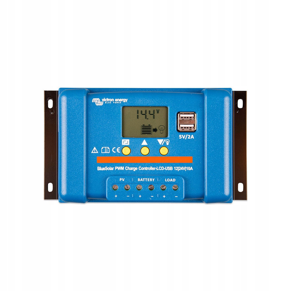Регулятор автоматически регулирует напряжение до 12 В или 24 В, обеспечивая оптимальную зарядку в различных конфигурациях. Оснащенный ЖК-дисплеем, он позволяет легко считывать рабочие параметры и состояние системы. Дополнительно регулятор имеет два USB-входа 5В 2А.