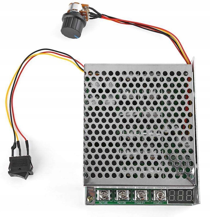 Регулятор скорости вращения для двигателей постоянного тока напряжением 10-50В, в основном используется в машинах а также транспортных средств и других устройств, где есть необходимость изменения скорости и направления вращения.